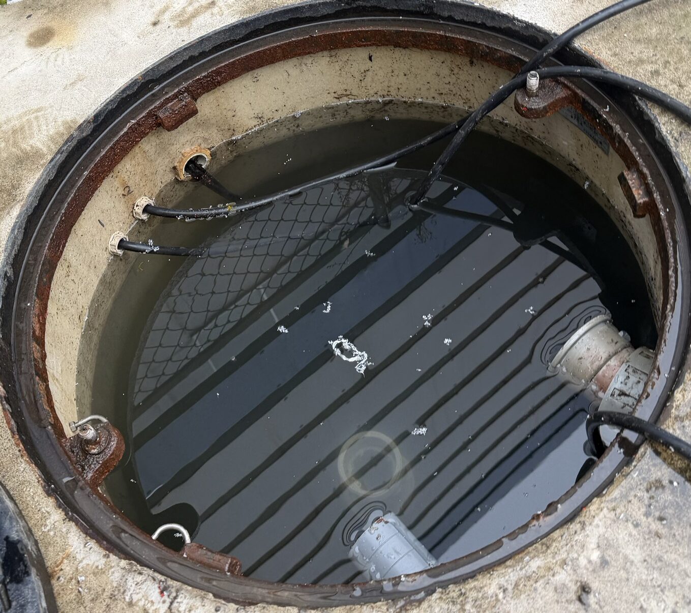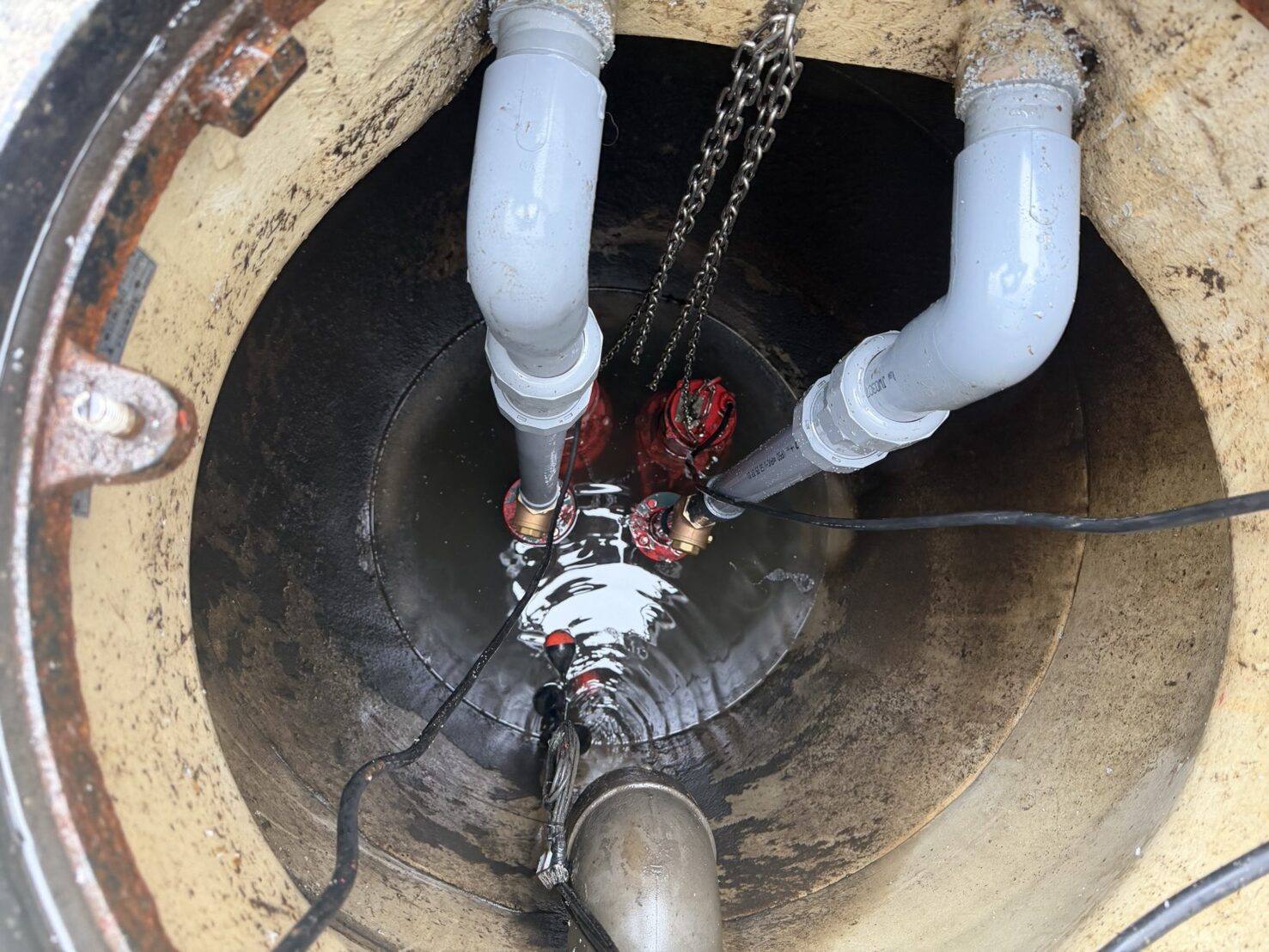 マンホール内部を清掃し、排水管全体を通管作業で洗浄。